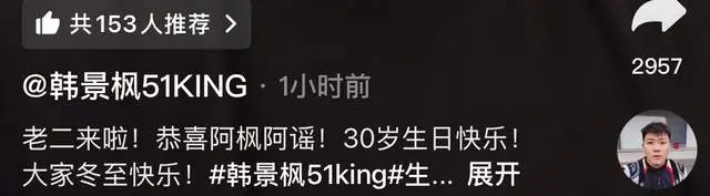 韩景枫的日常中,他不仅记录了自己的生日日常,还透露二胎已经到来,虽然不知道男女,但他的情绪非常到位,妻子李谣更是满面春光,没有抱怨,没有撒娇,反而是基于韩景枫安慰,这样的情商真的让人嫉妒羡慕。